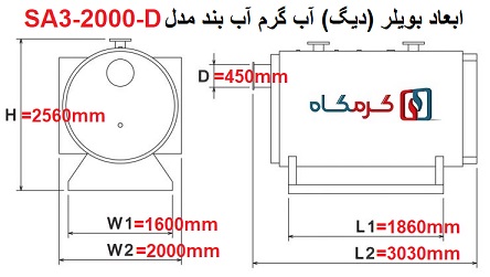 یکی از مدل های دیگ شوفاژ از گروه صنعتی آببند با نام تجاری آببند و ایران نوین بویلر (دیگ) آب داغ آب بند مدل SA3-2000-D می باشد. ظرفیت حراراتی این محصول 1000000 کیلوکالری بر ساعت بوده و نوع سوخت آن گاز – گازوئیل – مازوت می باشد.